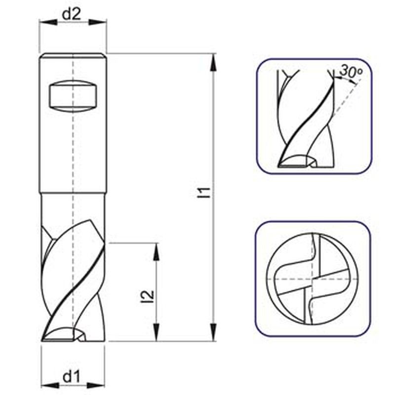Fresa de ranurar de dos labios, serie corta, corte al centro, hss-eco8 din 327 d ref. C110
