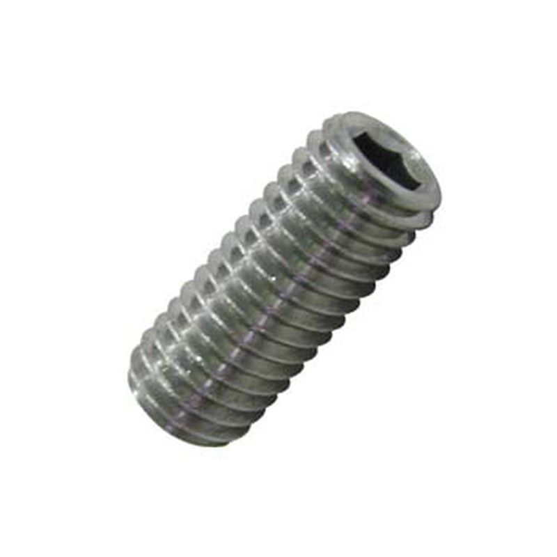 Tornillo din-916 sin cabeza con hueco hexagonal y extremo biselado hueco, de acero inoxidable a2 y rosca métrica.
